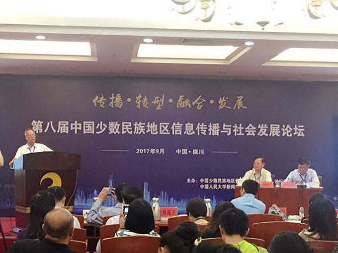 2017年9月16日,由中國(guó)少數(shù)民族地區(qū)信息傳播與社會(huì)發(fā)展論壇組委會(huì)、中國(guó)人民大學(xué)新聞傳播學(xué)院、寧夏大學(xué)新聞傳播學(xué)院聯(lián)合主辦,銀川市傳媒集團(tuán)協(xié)辦的第八屆少數(shù)民族地區(qū)信息傳播與社會(huì)發(fā)展論壇在寧夏銀川舉行。來(lái)自全國(guó)42所高校的130多名專(zhuān)家、學(xué)者齊聚銀川,圍繞少數(shù)民族地區(qū)信息傳播與社會(huì)發(fā)展問(wèn)題進(jìn)行交流研討。