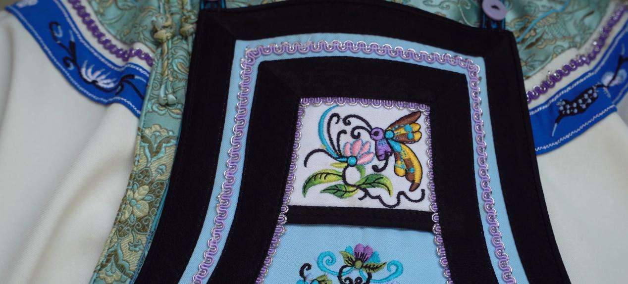 紅星村村內(nèi)布依族村民保留有布依族傳統(tǒng)服飾,在日常生活中也還有穿著布依族服飾的習(xí)慣。紅星村布依族女性服飾做工精細(xì),款式多樣。老人頭戴黑色圓帽,上身主要穿著灰白色斜襟上衣和青藍(lán)色打底的圍腰,上衣領(lǐng)口至兩肩處繡有大面積花紋圖案,圍腰上部也繡有花紋圖案作為裝飾。圍腰上的兩條絲帶系于身后,絲帶上繡有花紋圖案。下身穿著灰色長褲。