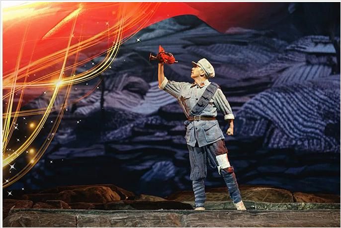 《花兒與號手》是一部以紅軍長征路過六盤山為背景創(chuàng)作的音樂劇,全劇展現(xiàn)了長征路上紅軍戰(zhàn)士的理想信念和“長征是宣言書、是宣傳隊、是播種機(jī)”這一核心思想,弘揚(yáng)了中國共產(chǎn)黨百年征程中展現(xiàn)出的無私無畏的革命精神。