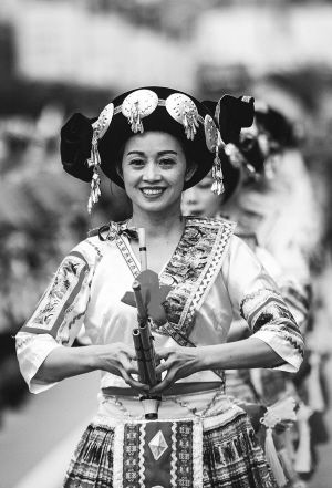 圖為當?shù)厝罕妳⒓游幕?jié)開幕式民族方隊巡游。新華社記者 陶亮 攝