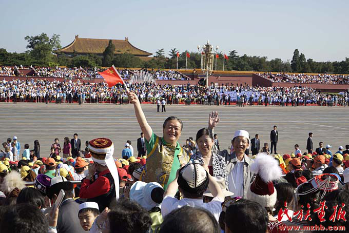 新中國成立以來,黨和國家始終堅(jiān)持把馬克思主義民族理論同中國民族問題具體實(shí)際相結(jié)合,始終堅(jiān)持把民族工作作為一項(xiàng)重大工作來抓,團(tuán)結(jié)帶領(lǐng)全國各族人民共同團(tuán)結(jié)奮斗,共同繁榮發(fā)展,開創(chuàng)了中國特色解決民族問題的正確道路,取得了舉世矚目的成就,積累了彌足珍貴的成功經(jīng)驗(yàn)。2009年10月1日,在北京天安門廣場(chǎng),20萬軍民以盛大的閱兵儀式和群眾游行歡慶新中國60華誕,圖為各民族學(xué)生參加“團(tuán)結(jié)奮進(jìn)”方陣群眾游行?!睹褡瀹媹?bào)》2009年第10期