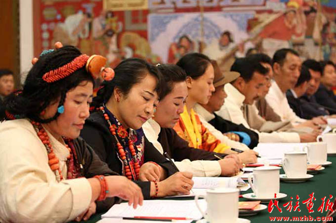 2017年10月18日,在中國共產(chǎn)黨第十九次全國代表大會(huì)上,習(xí)近平鄭重宣示:“經(jīng)過長期努力,中國特色社會(huì)主義進(jìn)入了新時(shí)代,這是我國發(fā)展新的歷史方位。”十九大報(bào)告中,習(xí)近平用五句話深刻揭示了新時(shí)代的內(nèi)涵,指出這個(gè)新時(shí)代,是承前啟后、繼往開來、在新的歷史條件下繼續(xù)奪取中國特色社會(huì)主義偉大勝利的時(shí)代,是決勝全面建成小康社會(huì)、進(jìn)而全面建設(shè)社會(huì)主義現(xiàn)代化強(qiáng)國的時(shí)代,是全國各族人民團(tuán)結(jié)奮斗、不斷創(chuàng)造美好生活、逐步實(shí)現(xiàn)全體人民共同富裕的時(shí)代,是全體中華兒女勠力同心、奮力實(shí)現(xiàn)中華民族偉大復(fù)興中國夢(mèng)的時(shí)代,是我國日益走近世界舞臺(tái)中央、不斷為人類作出更大貢獻(xiàn)的時(shí)代。圖為席黨的十九大的西藏自治區(qū)代表團(tuán)代表在討論十九大報(bào)告。《民族畫報(bào)》2017年第11期