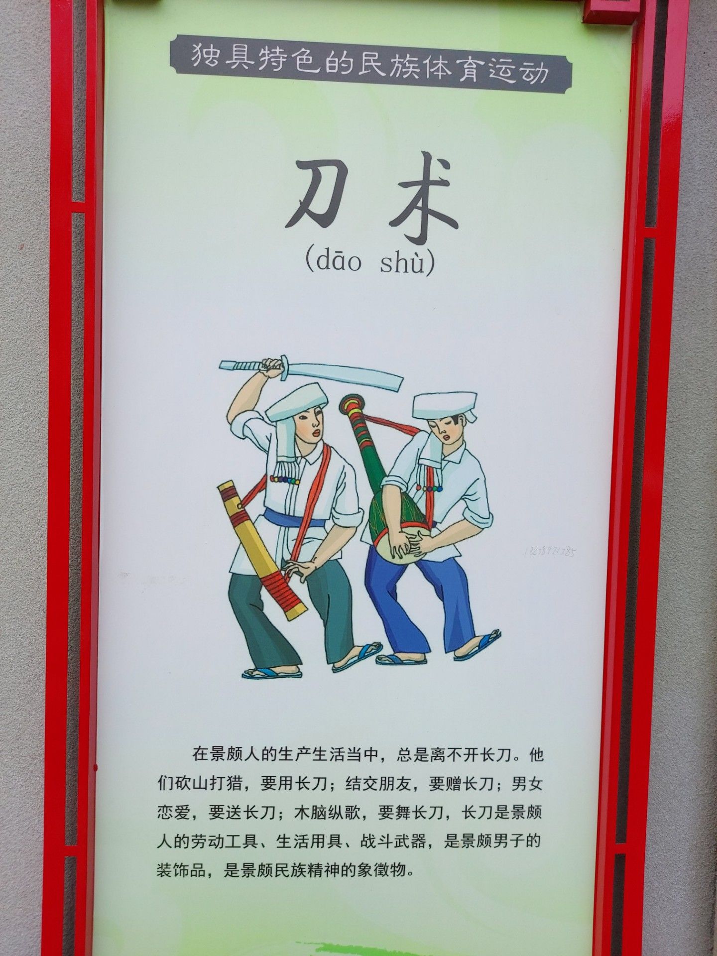在景頗人的生產(chǎn)生活當(dāng)中,總是離不開長刀。他們砍山打獵,要用長刀;結(jié)交朋友,要贈長刀;男女戀愛,要送長刀;木腦縱歌,要舞長刀,長刀是景頗人的勞動工具、生活用具、戰(zhàn)斗武器,是景頗男子的裝飾品,是景頗民族精神的象微物。