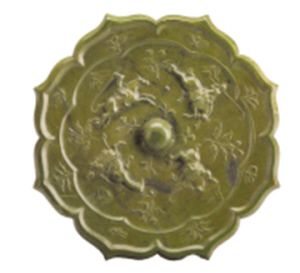 目前我國僅存三面有關(guān)打馬球圖案的銅鏡,一件為故宮博物院的傳世品,另一件收藏于安徽懷寧縣博物館,而以揚州出土的這一面銅鏡保存最好,是唐鏡中的珍品。這枚打馬球紋銅鏡收藏于江蘇省揚州博物館,直徑18.5厘米、厚1厘米,1965年出土于揚州邗江泰安金灣壩工地。鏡為菱花形,圓鈕。鏡背主紋為4名騎士,有的高舉鞠杖,作搶球狀;有的俯身向前,鞠杖向下,作擊球狀;四馬馳騁,四人搶球,氣氛熱烈緊張;人與球之間襯以高山、花卉紋,顯現(xiàn)出在郊外運動場比賽的情景,更添一絲活潑的生活氣息。