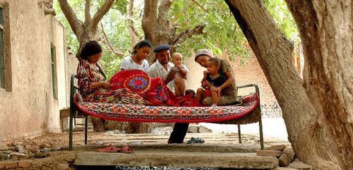走進(jìn)火焰山的時候,你就會發(fā)現(xiàn)一種奇怪的現(xiàn)象:家家戶戶的門口或者院落里的葡萄架下,多擺放著一兩張鐵床或木床,甚至有的慶就擺在水渠旁邊。游客會驚奇地部:這是人們睡覺的床嗎?是的,因為吐魯番太熱了,夜里大家都喜歡在房外睡覺,外面夜風(fēng)涼爽,又沒有蚊子咬,當(dāng)?shù)孛耧L(fēng)淳樸,素來有“夜不閉戶、路不拾遺”的好風(fēng)尚,所以人們都放心 在屋外睡覺,一覺能睡到日上三竿。你看到的這種“鐵床擺在大門外”的情景,在吐魯番的許多鄉(xiāng)村,甚至在吐魯番市區(qū)內(nèi),都是人們司空見慣的。