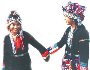 哈尼人是哈尼族的一個支系,大部分居住在云南省的瀾滄、孟連、景洪、勐海四縣的崇山峻嶺中。哈尼人勤勞勇敢,能歌善舞。在景洪縣的哈尼人山寨里,哈尼姑娘落落大方地為來客唱歌跳舞。由于特殊的地理環(huán)境,尤其是山高路遠交通不便,哈尼人受外來文化影響較小,自然的封閉狀態(tài)較完整地保留了原始古樸的民風民俗。其中最引人注目的是哈尼姑娘那峨冠錦繡的頭飾。無論在云霧繚繞的山寨,還是在榕蔭繁喧的集市,以及在林木蔥郁的山道上,隨處可看到哈尼姑娘們頭戴裝飾物的奇特繁多,猶如一件件精湛的工藝品頭飾,令人目不暇接,贊嘆不已。