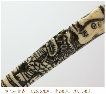 骨簪作為男女定情之“禮物”、亦作為貨幣的等價物進入流通領(lǐng)域,同時也因其工藝的精湛而作為貴重陪葬品進入另一個世界。這里有社會關(guān)系的締結(jié),也隱喻著生命的綿延。而人形,則暗含與民族歷史換喻性的關(guān)聯(lián),民族的過往可追本溯源,而物被賦予了某種“神性”,亦體現(xiàn)了其文化構(gòu)建者賦予的力量。