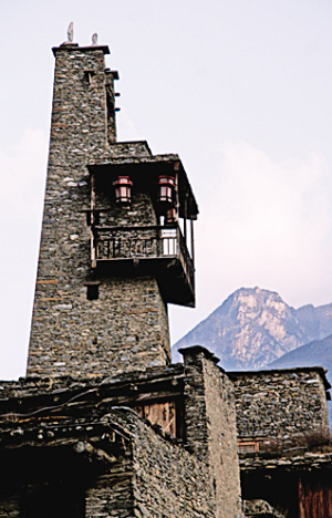 震前,理縣桃坪羌寨的千年碉樓