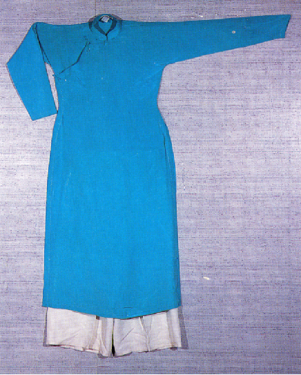 在古籍資料《防城縣志》中這樣記載:“安南人的服裝,男衫長(zhǎng)過膝,窄袖袒胸,腰間束帶;女衫長(zhǎng)不遮臀,褲闊……”從此項(xiàng)描述中可以大致知道京族早年傳統(tǒng)服飾的概況。