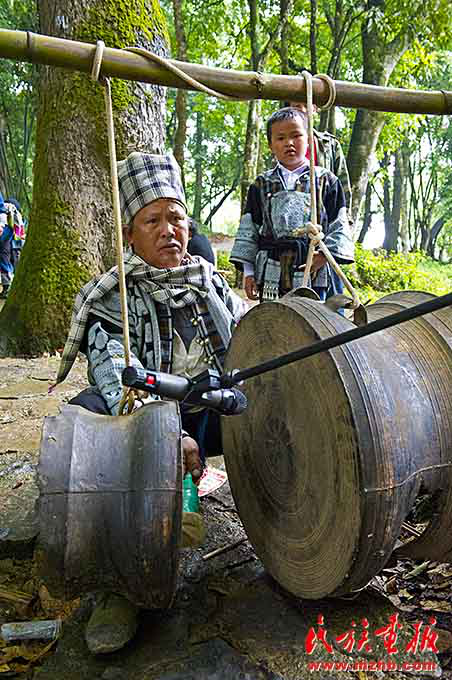 銅鼓是彝族倮家人心靈的號(hào)角,有銅鼓的地方就有倮家人。伴隨著古老的銅鼓聲,倮人開始慶?!笆w菜節(jié)”