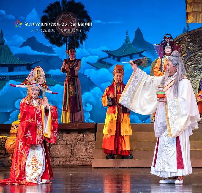9月14日,作為第六屆全國(guó)少數(shù)民族文藝會(huì)演參演劇目,由青海省選送、青海省藏劇團(tuán)(黃南藏族自治州民族歌舞劇團(tuán))創(chuàng)作演出的藏戲《意卓拉姆》在央視網(wǎng)和國(guó)家民委門(mén)戶網(wǎng)站進(jìn)行演播。該劇講述了傳說(shuō)中的仙女意卓拉姆與人間的諾桑王子相愛(ài),歷經(jīng)挫折與磨難后終成眷屬的愛(ài)情故事,表現(xiàn)出意卓拉姆對(duì)愛(ài)情的忠貞不渝和諾桑王子堅(jiān)韌不拔的意志。