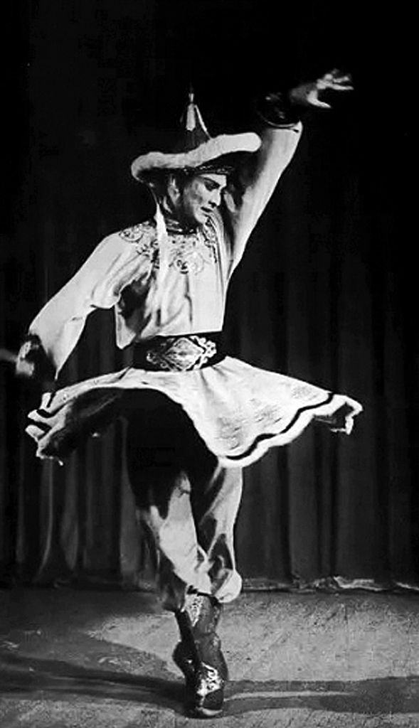 1947年,從張家口開往綏遠(yuǎn)的列車上,有個青年目不轉(zhuǎn)睛地凝視著窗外——無邊無際的草原上,一位牧馬的漢子騎術(shù)精湛,氣魄勇猛,手中揮舞著套馬桿于馬群中自由穿梭,剽悍而又豪邁。“就是這個感覺!”青年靈光乍現(xiàn)。不久,雄渾激昂的《牧馬舞》在舞蹈界引起轟動,尤其是那策馬揚鞭的動作,節(jié)奏明快剛?cè)嵯酀?jì),日后在無數(shù)蒙古舞作品中反復(fù)出現(xiàn)。編創(chuàng)這支舞蹈的青年就是著名舞蹈表演藝術(shù)家、編導(dǎo)藝術(shù)家賈作光。
