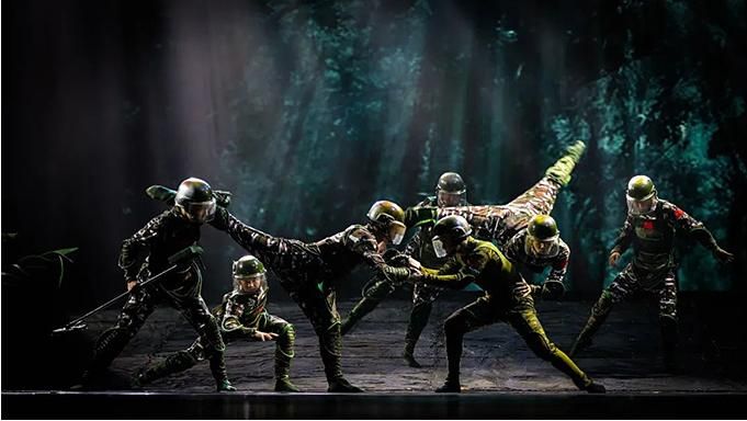 在舞劇敘事方式上,總編導(dǎo)之一董華興將民族性與現(xiàn)代性相互融合,嘗試了時空切割,段落重組,故事情節(jié)的倒敘、插敘,真實性與虛擬性相結(jié)合等方法。