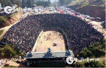 貴州省從江縣第十五屆原生態(tài)侗族大歌節(jié)的前一天,恰逢該縣逢亥斗牛日,丙妹鎮(zhèn)松學(xué)斗牛塘、谷坪鄉(xiāng)四寨河斗牛塘同時(shí)舉辦傳統(tǒng)牛王爭(zhēng)霸賽,喜迎一年一度“侗族大歌節(jié)”的到來,共有來自周邊村寨的80頭水牯牛參戰(zhàn),斗?;顒?dòng)場(chǎng)上名牛角逐,場(chǎng)面異彩紛呈,吸引數(shù)萬名觀眾前來觀戰(zhàn)。