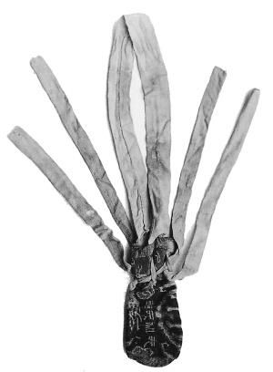 “元和元年”銘文錦囊,東漢時(shí)期,民豐縣尼雅墓地出土。