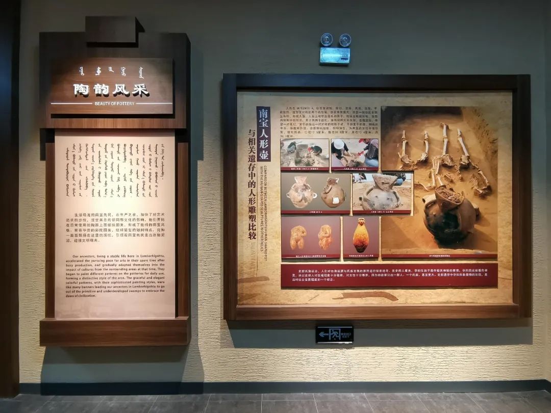 陶韻風(fēng)采;生活穩(wěn)定的南寶先民,在生產(chǎn)之余,加快了對藝術(shù)追求的步伐,接受來自周鄰?fù)谖幕挠绊?,他們開始在日常使用的陶器上面描繪圖案,形成了獨(dú)特的南寶風(fēng)格。雍容華貴的彩陶圖案,紋樣繁復(fù)的劃刻特點(diǎn),宛如一面面飄揚(yáng)在這里的旗幟,引領(lǐng)著南寶先民走出原始泥沼,迎接文明曙光。
