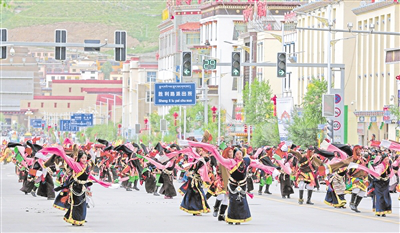2017年7月24日下午,一場名為“瀟灑的康巴人”玉樹風(fēng)情巡游在玉樹藏族自治州州府玉樹市街頭上演。來自玉樹州一市五縣的康巴藏族兒女或馭駿馬、或盛裝、或歌舞,以行走巡游的方式展示當(dāng)?shù)鬲?dú)具特色的民族民俗文化。各縣巡游隊(duì)伍從感恩廣場出發(fā),途徑結(jié)古大道、民主路,最終到達(dá)玉樹軍分區(qū),沿途圍滿了觀看的群眾和游客,據(jù)悉,此次巡演在玉樹州尚屬首次。