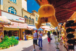 阿熱亞民俗文化街有多個巴扎,分別是首飾巴扎、花盆巴扎、坎土曼巴扎、木器巴扎、維藥巴扎、帽子巴扎。路上隨處可見妝扮時尚的當(dāng)?shù)厍嗄?,女孩子們穿著破洞九分牛仔褲?/span>