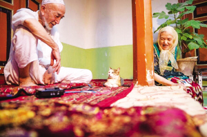 20多年前的喀什古城,老舊巷道縱橫交織,衛(wèi)生狀況較差,一些大膽的老鼠不論白天黑夜在巷道里亂竄,很多人家養(yǎng)貓是為了對付老鼠。如今走在改建后的古城里,所到之處窗明幾凈,而這里的貓從捕鼠者變?yōu)榧彝櫸铩X堃堰m應(yīng)角色轉(zhuǎn)變,愜意地享受著暖暖的羊毛毯。老兩口對寵物貓像對自家的孩子一樣呵護(hù)備至。