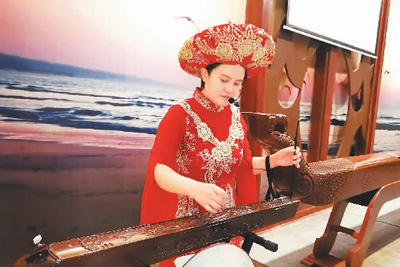 在京族文化傳承與保護中心,記者遇到63歲的獨弦琴藝術(shù)家蘇春發(fā)和32歲的講解員趙霞。“我5歲跟叔叔學獨弦琴,11歲拜姑丈為師,1991年以來,我親手教出來的學生已有300多人?!苯衲?月,蘇春發(fā)獲得國家文旅部頒發(fā)的“京族獨弦琴藝術(shù)代表性傳承人”證書。京族姑娘趙霞曾參加“京族哈妹組合”,進入第十四屆CCTV青歌賽原生態(tài)組全國決賽,并榮獲團體優(yōu)秀獎。她左手搖柱,右手撥弦,當場為我們演奏一曲悠揚、委婉的京族民歌《過橋風吹》,把京族少男少女的情動心境演繹得非常唯美。