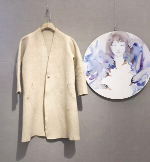 哈薩克族羊絨氈衣 秦娜兒·努爾蘭(參展人): 哈薩克人從搖籃到墳?zāi)苟茧x不開氈子。我是在奶奶做的花氈上邁出人生第一步的。奶奶去世的時(shí)候,為了紀(jì)念她,我做了這件衣服。這是一件可以穿一輩子的、能承載得起一段記憶的衣服。如果奶奶在世,看到這件衣服也會贊嘆吧!