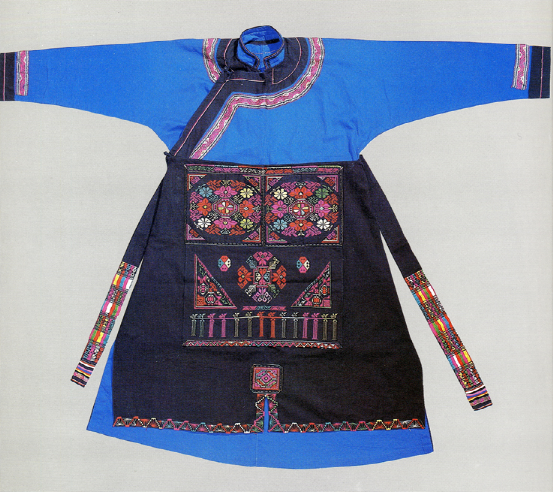 羌族婦女與男子衣服最大的不同之處是領邊、袖口、腰帶和鞋子上常挑繡有幾何花紋圖案,衣領上鑲有一排小的梅花形圖案銀飾。挑繡的圖案多反映現(xiàn)實生活中的自然景象,如植物中的牡丹、梅花,動物中的喜鵲、蝴蝶、羊等。所挑繡之景物,無不栩栩如生,內(nèi)容多含吉祥如意和對幸福生活的憧憬和渴望。