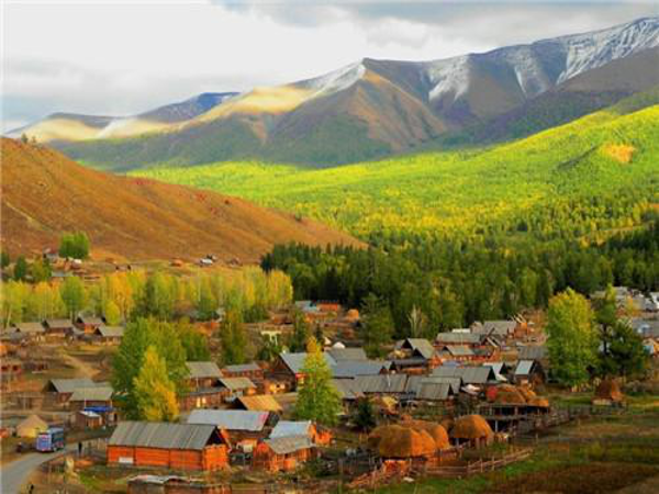 白哈巴是個(gè)原始自然生態(tài)與古老傳統(tǒng)文化共融的村落,一切都還保存著幾百年來(lái)固有的原始風(fēng)貌,以圖瓦人為主,位于阿爾泰山山脈的山谷平地上,與哈薩克斯坦的大山遙遙相望,阿爾泰山上密密麻麻的金黃金黃的松樹(shù)林一直延伸到白哈巴村里,村民住的木屋和圈養(yǎng)牲畜的柵欄錯(cuò)落有致地散布在松林和樺林之中,安寧、祥和。