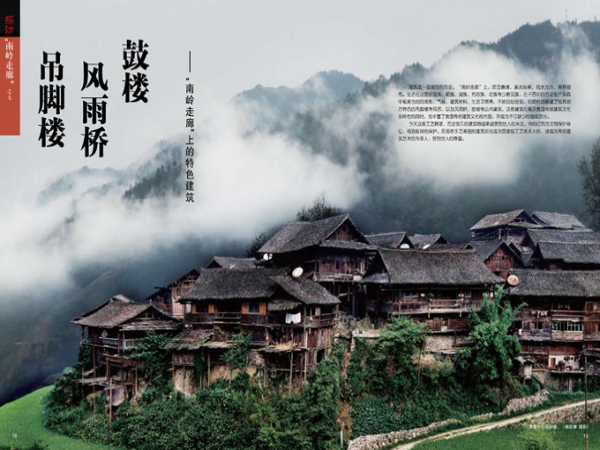 建筑是一部凝固的歷史。“南嶺走廊”上,層巒疊嶂,溪流縱橫,雨水充沛,森林密布。生活在這里的苗族、侗族、瑤族、布依族、壯族等少數(shù)民族,在千百年的勞動(dòng)生產(chǎn)實(shí)踐中根據(jù)當(dāng)?shù)氐牡匦巍夂?、建筑材料、生活?xí)慣等,不斷總結(jié)經(jīng)驗(yàn),創(chuàng)造性地修建了獨(dú)具地方特色的吊腳樓等民居,以及風(fēng)雨橋、鼓樓等公共建筑,這些建筑在展示我國(guó)傳統(tǒng)建筑文化多樣性的同時(shí),也豐富了我國(guó)傳統(tǒng)建筑文化的內(nèi)容,成為不可缺少的組成部分。