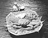 撒嘎當(dāng),即螃蟹剁生。以新鮮螃蟹為主要原料,配以糊辣椒粉、姜末、蒜泥、芫荽、南瓜籽、炒米面等佐料調(diào)制。加工時,將螃蟹敲死放在火塘中翻燒至熟,去掉硬殼后剁細(xì)成泥狀,加適量食鹽、糊辣椒末、蒜泥、熟南瓜子面、炒米面調(diào)拌均勻即成。這道菜味香、辣、鮮,用糯米飯蘸吃,或用蘿卜、白菜、水薄荷、野芹菜等蘸吃均可。