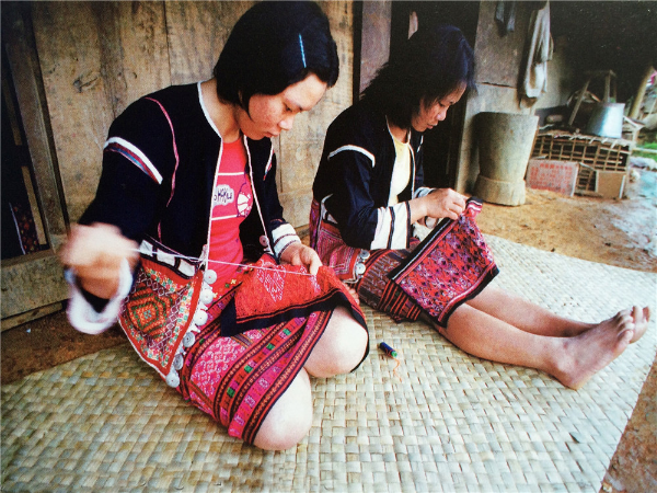 繡”是指黎族婦女用彩色線在棉、麻等布料上繡制出各種圖案,或者在織錦圖案編織完成后,再進(jìn)行補繡,提高圖案的效果。黎族織錦的主體圖案一般都是刺繡的,主體圖案中的若干局部都要靠刺繡來完成。
