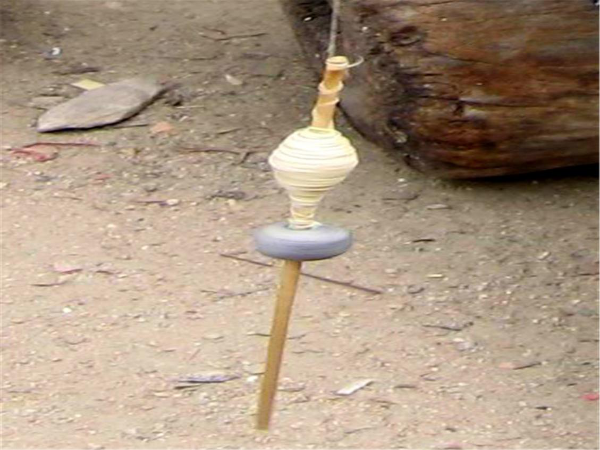 “紡”是把野生棉花或木棉花用絞棉機去除棉籽后捻成線,纏繞到手捻紡輪車上,包括錯紗、配色、綜線、攀花等。