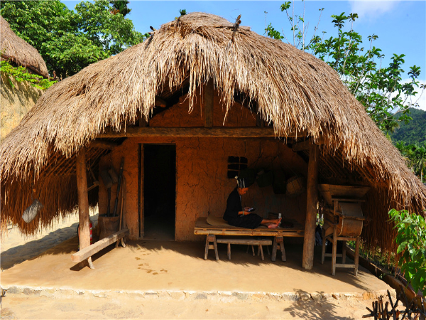 船形屋有高腳船形屋與矮腳(落地式)船形屋之分,外形像船篷,呈拱形。船形屋的建筑特點是,平面呈縱長方形,兩端山墻設(shè)入口,屋蓋一般是半圓拱形,房屋的輪廓像是一條倒扣的帆船。這類房屋不設(shè)窗戶,只從兩端開門,前面有一個陽臺,置一個樓梯供上下,進(jìn)門后整個“船”身分為三節(jié),像三個艙,各有小門相通,第一節(jié)是“廳”,設(shè)有閣樓,存放糧食與雜物、家什等;第二節(jié)是臥室,除了放床以外,還放火灶,作為蒸酒或烤火之用;第三節(jié)面積最小,開一個后門,是每天舂米和放置生產(chǎn)工具、雞窩的地方。