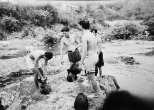 有一天,我在通什(今五指山市)的一條河邊,看見有幾個黎族人抱著大葫蘆過河。我趕緊拿出相機,在河邊的大石頭間跳來跳去追拍。沒想到一不留神就跳空了,重重地摔在石頭上,造成了骨裂,當(dāng)時就不能動彈了,在醫(yī)院里躺了好長一段時間。