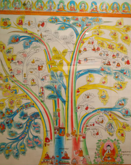 “唐卡”也叫“唐嘎”、“曼湯”,系藏語譯音。唐卡的起源,至今沒有史料給予精確的記載。據藏史記,兩千多年前在西藏修建的第一座宮殿——雍布拉宮的墻壁上就繪有壁畫,由此說明唐卡的雛形是源于壁畫。有的學者認為,最早的唐卡是繪制在獸皮上,它起源于牧業(yè)文明的雅礱文化時期。唐卡可分為兩大類,一類是用絲絹制成的唐卡叫“國唐”,另一類是用顏料繪制的唐卡叫“止唐”。常說的80幅醫(yī)學唐卡即“止唐”中的一種,全稱為彩色繪畫唐卡。彩繪唐卡是依據《四部醫(yī)典》這部巨著,在公元1730年五世達賴授意第司·桑結嘉措組織藏區(qū)著名醫(yī)學家、繪畫大師通過對尸體解剖、藥材實物考察,以科學態(tài)度整理繪制的,又被稱為《四部醫(yī)典系列掛圖》,掛圖的繪制使《四部醫(yī)典》這部博大精深的醫(yī)著史書簡明易懂。西藏自治區(qū)藏藥廠的陳列室藏這珍貴的歷史資料——醫(yī)學唐卡,幾百年過去了,唐卡色彩依然明亮艷麗、工筆細膩、活靈活現(xiàn),栩栩如生。繪制唐卡的原料全部是用金、銀、珍珠、瑪瑙、珊瑚、松石、孔雀石、朱砂等珍貴的礦物寶石和藏紅花、大黃等天然植物做顏料制作而成,使唐卡有著非常高的純度和穩(wěn)定性。第司·桑結嘉措完成的唐卡有79幅,加附由第司·桑結嘉措親筆題詩加蓋印章的一幅歷代名醫(yī)圖,組成“80幅唐卡”。80幅唐卡,從藥王及藥王城(藏醫(yī)學基礎理論的建立),人體生理病理、診斷、治療的樹喻學說,病因、癥狀和分類,藏藥的藥物理論和分類,防病、診斷和治療、養(yǎng)生方法, 生動形象地反映了藏醫(yī)藥學發(fā)展的進程和偉大實踐。藏醫(yī)彩繪唐卡除了有極高的教學價值外,還有很高的民族學、歷史學、佛學及繪畫學價值,是研究藏文化的珍貴資料,其卷幅之多、內容之廣博、構思之巧妙、畫工之精湛堪稱世界醫(yī)學掛圖之最,是藏醫(yī)學對世界醫(yī)學的珍貴貢獻。詳細名目如下: