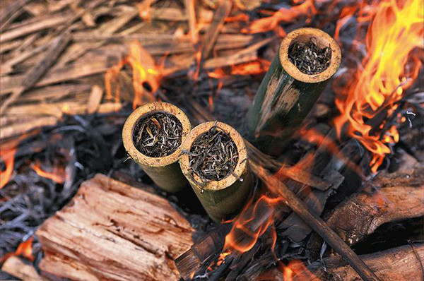 德昂族種茶的歷史悠久,茶在德昂族民間不僅是常備的飲料,也是饋贈親友的最好禮品。外出必須砍一段楠竹,削個斜口,放入茶葉注入泉水,用火燒開飲用,別有一番香味。德昂族也飲酸茶,又稱濕茶,古時稱之為谷茶或沽茶。制酸茶時在茶葉中加少許檳榔,放入大竹筒中壓實,密封筒口,存放一至兩個月發(fā)酵后取出,入嘴細(xì)嚼,味酸澀,能生津解渴,并有解暑清熱、消食的作用。