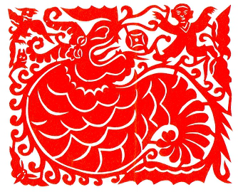 苗族民間剪紙的獨(dú)特之處還表現(xiàn)在構(gòu)思的新穎奇妙上。如《姜央兄妹合磨成親》圖,藝人為了擴(kuò)大意境,打破了時(shí)間與空間的限制,把發(fā)生在不同時(shí)間與空間的事物描繪在一幅畫面上。作者大膽而巧妙地把畫面分成天空、山頂和山腳三部分,來表現(xiàn)三個(gè)不同的情節(jié)。天上飛的是蝴蝶和山雞,山頂上站著拍手叫好的姜央,山腳下站著姜央的妹妹以及已合上了的石磨,還有被從山頂上滾下來的石磨嚇驚了的野兔。這幅畫面生動(dòng)形象地描繪了洪水泛濫后,地上的人都被淹死了,姜央和妹妹藏在葫蘆中幸免于難,為了繁衍人類,兄妹只好成親等情節(jié),非常巧妙地使這一遠(yuǎn)古傳說得到精致的再現(xiàn)。又如三接式袖花剪紙圖案,畫面中間是雙象斗獸,上方是人馴蠶身龍,下面是龍象相爭,其余空處是魚鳥蟲蝶。這種奇特的構(gòu)思,把原始社會(huì)人與自然的關(guān)系表現(xiàn)得淋漓盡致。