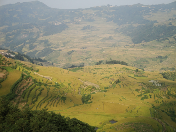 元陽(yáng)哈尼族開墾的梯田隨山勢(shì)地形變化,因地制宜,坡緩地大則開墾大田,坡陡地小則開墾小田,甚至溝邊坎下石隙也開田,因而梯田大者有數(shù)畝、小者僅有簸箕大,往往一坡就有成千上萬(wàn)畝。元陽(yáng)梯田規(guī)模宏大,氣勢(shì)磅礴,綿延整個(gè)紅河南岸的紅河、元陽(yáng)、綠春及金平等縣,僅元陽(yáng)縣境內(nèi)就有17萬(wàn)畝梯田,是紅河哈尼梯田的核心區(qū)。元陽(yáng)縣境內(nèi)全是崇山峻嶺,所有的梯田都修筑在山坡上,梯田坡度在15度至75度之間。以一座山坡而論,梯田最高級(jí)數(shù)達(dá)3000級(jí),這在中外梯田景觀中是罕見(jiàn)的。元陽(yáng)哈尼梯田主要有3大景區(qū):壩達(dá)景區(qū)包括箐口、全福莊、麻栗寨、主魯?shù)冗B片14000多畝的梯田;老虎嘴景區(qū)包括勐品、硐浦、阿勐控、保山寨等近6000畝梯田;多依樹景區(qū)包括多依樹、愛(ài)春、大瓦遮等連片上萬(wàn)畝梯田。如此眾多的梯田,在茫茫森林的掩映中,在漫漫云海的覆蓋下,構(gòu)成了神奇壯麗的景觀。這些景區(qū)就是目前準(zhǔn)備申報(bào)世界遺產(chǎn)的核心保護(hù)區(qū)。