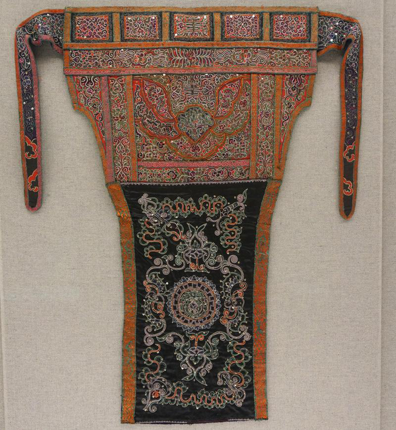 水族服飾的特點(diǎn)是“短衣長裙”,且完全用火麻土布作面料,民國以后逐漸易裙為褲。水族服飾中最有代表性的是女性的服飾。水族女服多以水家布縫制,一般不繡花邊。而節(jié)日和婚嫁盛裝與平時穿戴截然不同。婦女刺繡的背帶更有藝術(shù)性。