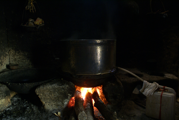 毛南族最具獨特風味要數(shù)“毛南三酸”,它們是“羅番”“腩醒”“甕煨”(均毛南語)?!傲_番”是一種酸螺絲湯,調(diào)以蔥花、番茄、青椒和油、鹽等作料煮開,用以送飯,可增進食欲?!傲_番”除增強消化外,在大暑熱天還有解熱的作用,所以毛南人常用它做清涼飲料,以防中暑?!半钚选笔且环N用豬肉牛肉腌制而成的別有風味的酸肉。“甕煨”是一種特殊的鹽水壇,其原料主要是鹽水、藠頭、生姜和青椒。鹽水可防止食物變腐臭。一壇“甕煨”可腌制多種菜味,如蘿卜、豆角、黃瓜、刀豆等,但最美的是腌豬耳朵、豬頭皮、豬腳和豬尾巴。先將它們煮熟,冷卻后放入壇里,24小時后即變酸,保留十天半月也不腐。因此,人們把“甕煨”譽為“節(jié)能電冰箱”?!爱Y煨”腌制的肉類,毛南人叫“腩清”,也是待客宴席上的佳肴之一(圖為毛南族燒酒)。