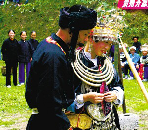 幾個(gè)月后,女方會(huì)用籃子提來可口的食物,與男方共享,并開始送女紅等信物。很自然地,玩伴心中就涌起“人圖人”、“人謀人”的念頭,玩山隨之進(jìn)入最激動(dòng)人心的成雙階段。