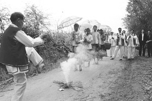 迎親隊(duì)伍出村口時(shí)要“過(guò)火堆”,求吉利