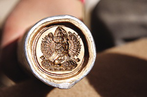 我在曼谷一家有40年歷史的佛像店“佛光工藝社”采訪時問到老專家這樣一個問題:泰國現(xiàn)在大概有多少種圖案的帕肯?所有聽到這個問題的人都是一聲驚嘆,然后笑說:“無數(shù)!”我非要問出個數(shù)來,他們便告訴我,泰國是一個歷史劃分復雜、族源廣博的國家,因此其包容性很強,雖然九成以上的人信仰佛教,但是婆羅門教、道教、伊斯蘭教、基督教等在泰國都被接納,還有本土的一些法術也不曾被丟棄。所以,每天每個來定做的人都會有不同材質的要求,不同圖像、符咒的組合,僅一個工藝社40年來就已經(jīng)做過幾十萬種的圖案組合。我收藏的擦擦有不同年代、不同材質、不同價值的,除去年代久遠的,頗有價值的就是一個藥擦,那是一個大威德金剛擦,專家說從被剝落的剖面看,里面有藥材的成分。我知道,在西藏,擦擦因材質和制作人不同而有很大的區(qū)別。擦擦中最為稀有難求的一種叫“布擦”,那是寺廟僧人在保存活佛法體的時候,將那些浸透活佛法身血水的鹽巴或其它藥物和泥土融合后制成的。另一種較為珍貴的擦擦是活佛的骨灰與泥土摻混在一起制作而成的。還有一種藥物擦擦,是用不同的名貴藥材如珍珠、瑪瑙、藏紅花等藏藥合成制作,可服用治病。最普通的擦擦用一般的泥土制作,好一點的有膠泥、陶土、白泥等,這種擦擦成本低廉,在民間流傳最廣。
