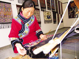 憑著這種精神,葉水云從跟著在龍山織錦廠當終身顧問的姑婆一起進廠當技術(shù)工人開始,一躍成為吉首市織錦廠副廠長,后又獨當一面地創(chuàng)辦了一個專門研究土家織錦和苗家蠟染的民族藝術(shù)研究所,和老公開了一間屬于自己的織錦店。