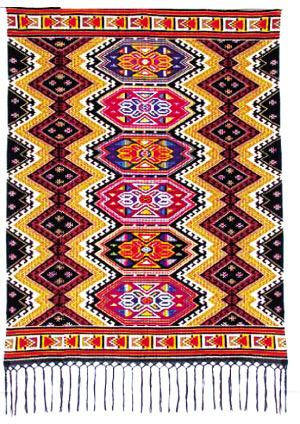 在長期的藝術(shù)實踐中,葉水云感到自己的專業(yè)美術(shù)水平有限。于是,她考入鳳凰職業(yè)中專學習美術(shù)專業(yè),并被留校任教,后又在湘西州教育學院進修大學美術(shù)專業(yè)?!巴良铱楀\沒有草稿,最重要的一個環(huán)節(jié)就是配色。以前配色沒有理論指導,主要從個人感覺出發(fā),喜歡紅、綠等艷色系。除了講究圖案平整以外,配得好不好自己也不清楚。學習后才慢慢認識到,配色應注重冷暖色調(diào)的對比與襯托。”所以,葉水云織出來的“西蘭卡普”色彩更為統(tǒng)一調(diào)和,艷而不俗,粗獷中有細節(jié),大氣中有精巧,看上去更加舒服。