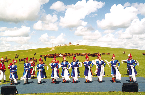 內蒙古烏蘭牧騎的演員,吹拉彈唱跳,幾乎個個是多面手。從以前騎馬下鄉(xiāng)到現(xiàn)在坐車下鄉(xiāng),方式雖然有變,但為農牧民演出的熱情沒有變。鄂溫克自治旗烏蘭牧騎在當地為農牧民演出都是公益性的,一年最少也有100多場。但自然地,由上級指派、旅游接待、大型晚會、出訪演出,則收一些相應費用。全年下來300多場。他們的演出節(jié)目,一般都有舞蹈、獨唱、重唱、馬頭琴合奏、民歌聯(lián)唱等,包括《敖包相會》、《萬馬奔騰》等馬頭琴名曲,也有他們自己創(chuàng)作的《山林回想》、《鄂溫克大地》等獲獎歌舞劇目。