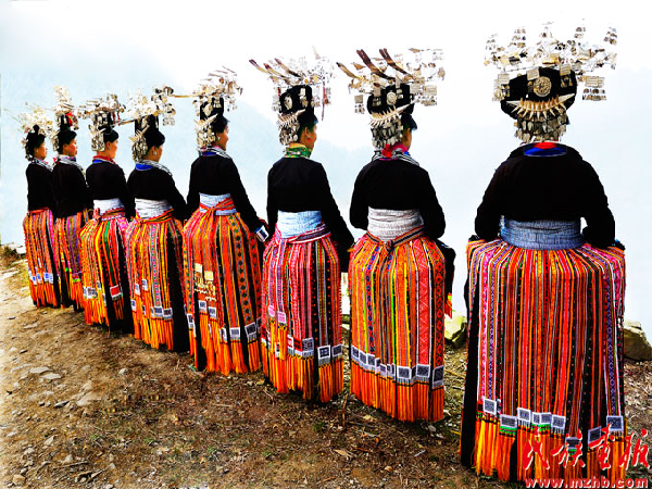 廣西賀州過山瑤婦女身上服飾色彩極其豐富