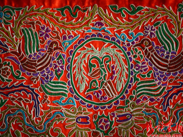 黎錦、壯錦、艾德萊斯綢、氆氌、苗繡、羌繡、馬尾繡、蠟染、扎染……當(dāng)我們面對這些精美的作品時(shí),我們很難想象到這些東西是由少數(shù)民族婦女的雙手,使用最簡單的紡車、織機(jī)等工具創(chuàng)造出來的,她們靠口傳心授把技法熟記于心,大自然是她們模仿的對象,她們制作出的服飾不僅色彩豐富,而且還將民族發(fā)展的歷程紀(jì)錄在了服飾上。很多少數(shù)民族沒有自己的文字,對自己民族歷史的記載除了口口相傳以外,他們把一些提煉升華后的符號或織或繡或染到服飾之中。苗族的服飾文化在這一點(diǎn)上極其突出。苗族沒有文字,苗族的歷史文化是靠口頭文學(xué)和服飾圖畫藝術(shù)來表達(dá)的。苗族老人對苗族少年講述民族歷史時(shí),常指著服飾上的各色圖案一一道來。苗族服飾再現(xiàn)歷史的功能,成為苗族傳世的“無字史書”。