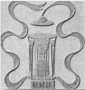 長鼓是朝鮮族最有特色的民間樂器。長鼓也稱杖鼓、兩杖鼓,是古代細腰鼓的變體。長鼓的鼓身由木制作,呈圓筒形,外形兩端粗而中間空,長度為70-80厘米左右。演奏時用右手持槌敲擊鼓面,左手拇指放在鼓框邊,用其余四指拍擊鼓面,演奏技巧豐富多變。長鼓、象帽共同組成的圖案構成了長白山天池輪廓,表現了朝鮮族擅長歌舞的民族特點和團結奮進、樂觀開放的精神品格。