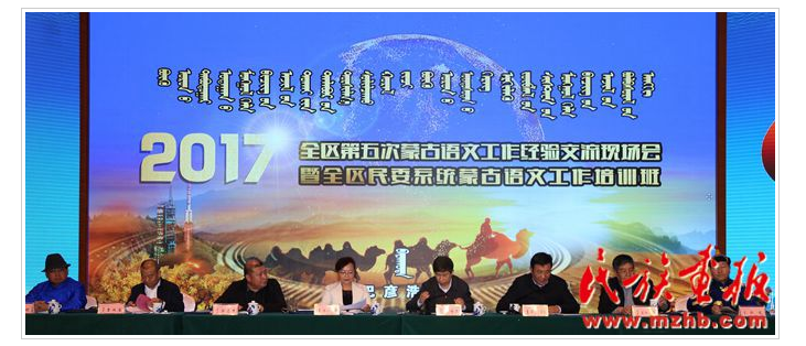 2017年11月28至29日,內(nèi)蒙古自治區(qū)第五次蒙古語(yǔ)文工作經(jīng)驗(yàn)交流現(xiàn)場(chǎng)會(huì)暨全區(qū)民委系統(tǒng)蒙古語(yǔ)文工作培訓(xùn)班在內(nèi)蒙古自治區(qū)阿拉善盟召開