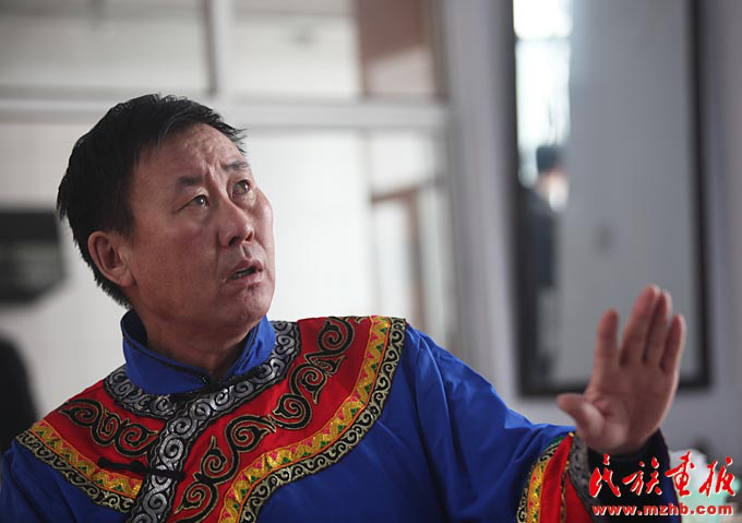 赫哲族獨(dú)特說(shuō)唱藝術(shù)伊瑪堪的傳人吳寶臣(袁東平 攝影)